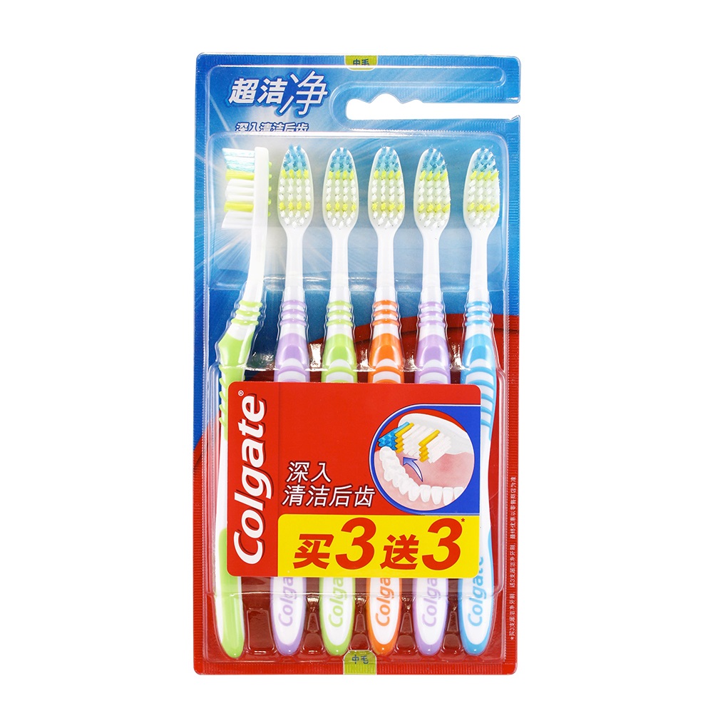 【天猫超市】高露洁牙刷超洁净3支+3支惊喜装 中毛 有效深入后齿