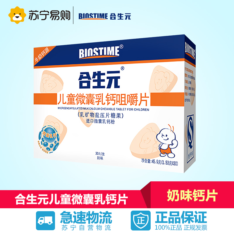 【苏宁易购】合生元 儿童微囊乳钙咀嚼片(奶味)1.53克x30片*1