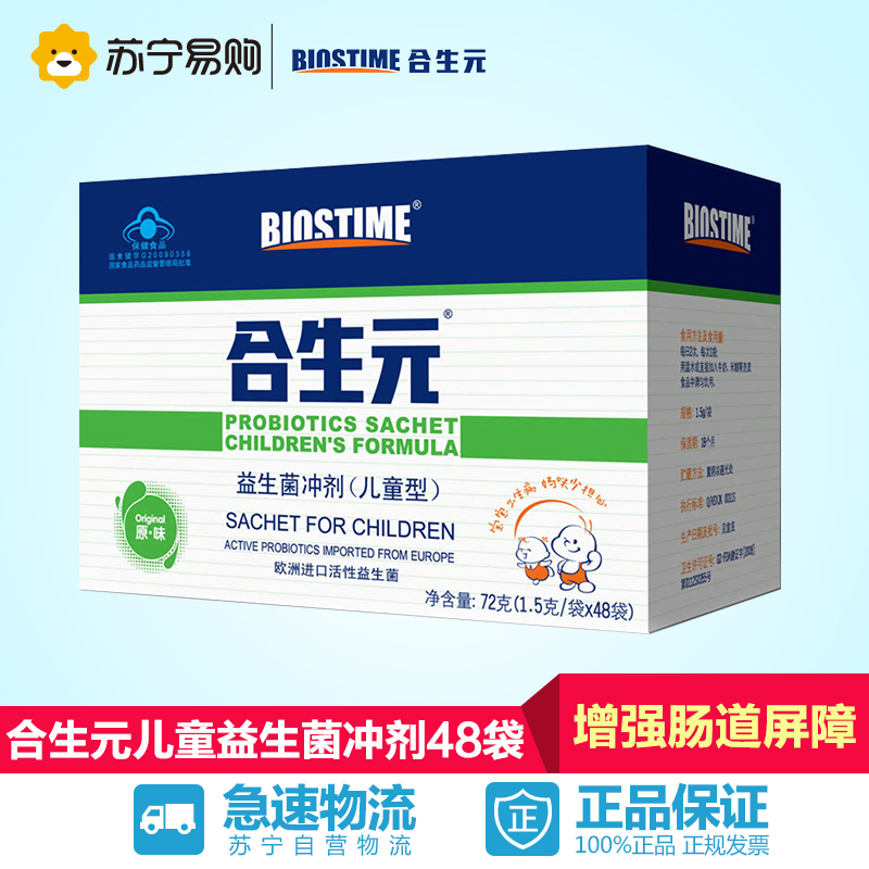 【苏宁易购】合生元儿童益生菌冲剂1.5克/袋x48袋*1 儿童益生元