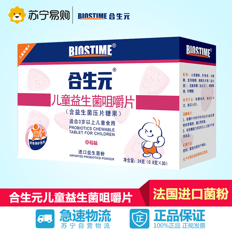 【苏宁易购】合生元儿童益生菌咀嚼片(草莓味)0.8克x30片*1