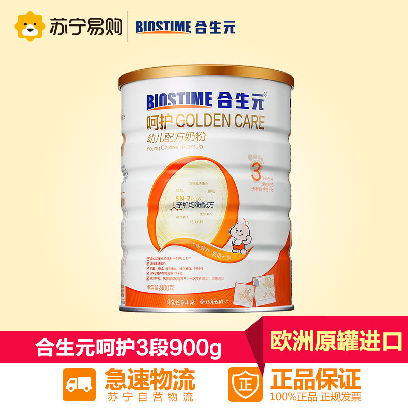 【苏宁易购】合生元呵护幼儿配方婴儿奶粉3段900g盒丹麦原装进口