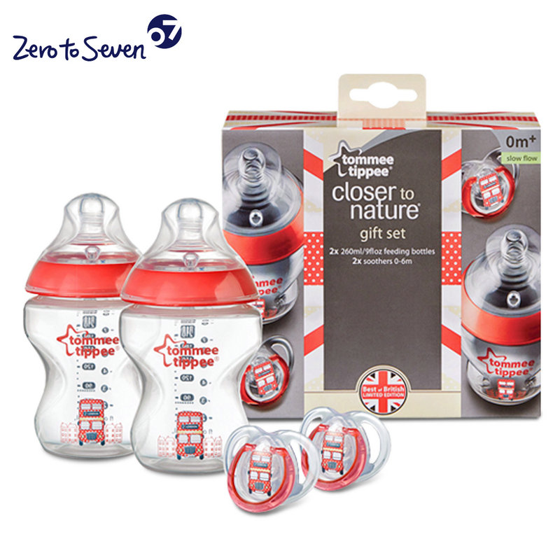 汤美天地母乳自然印花奶瓶礼盒套装红CTN奶瓶+安抚奶嘴英国限量版