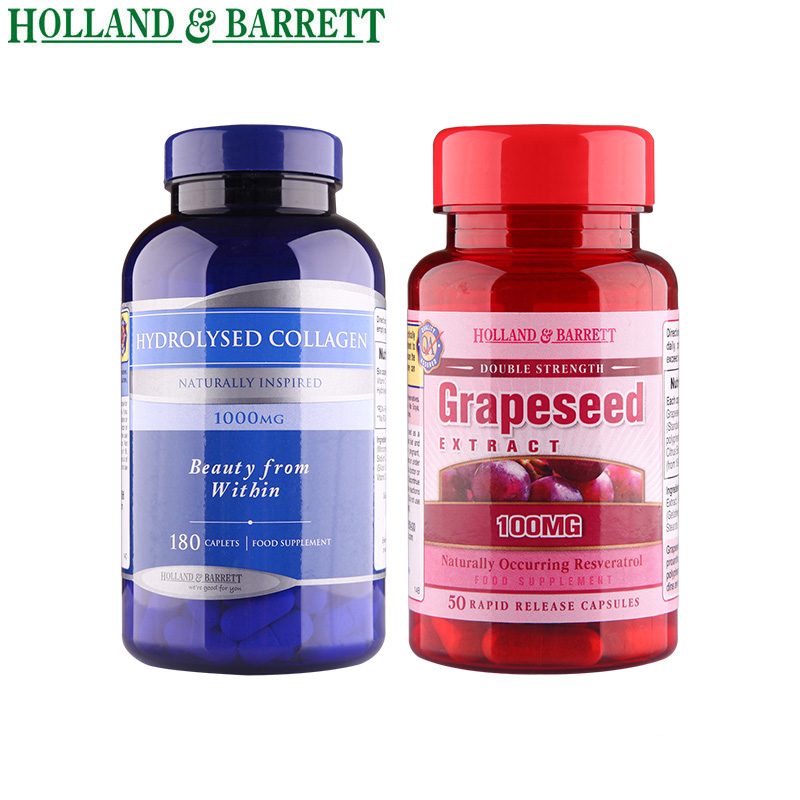 HollandBarrett/HB英国水解胶原蛋白+葡萄籽100mg50粒 补水组合装