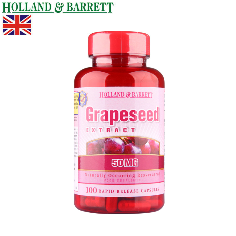 HollandBarrett/HB荷柏瑞英国葡萄籽精华胶囊50mg100粒皙颜抗氧化