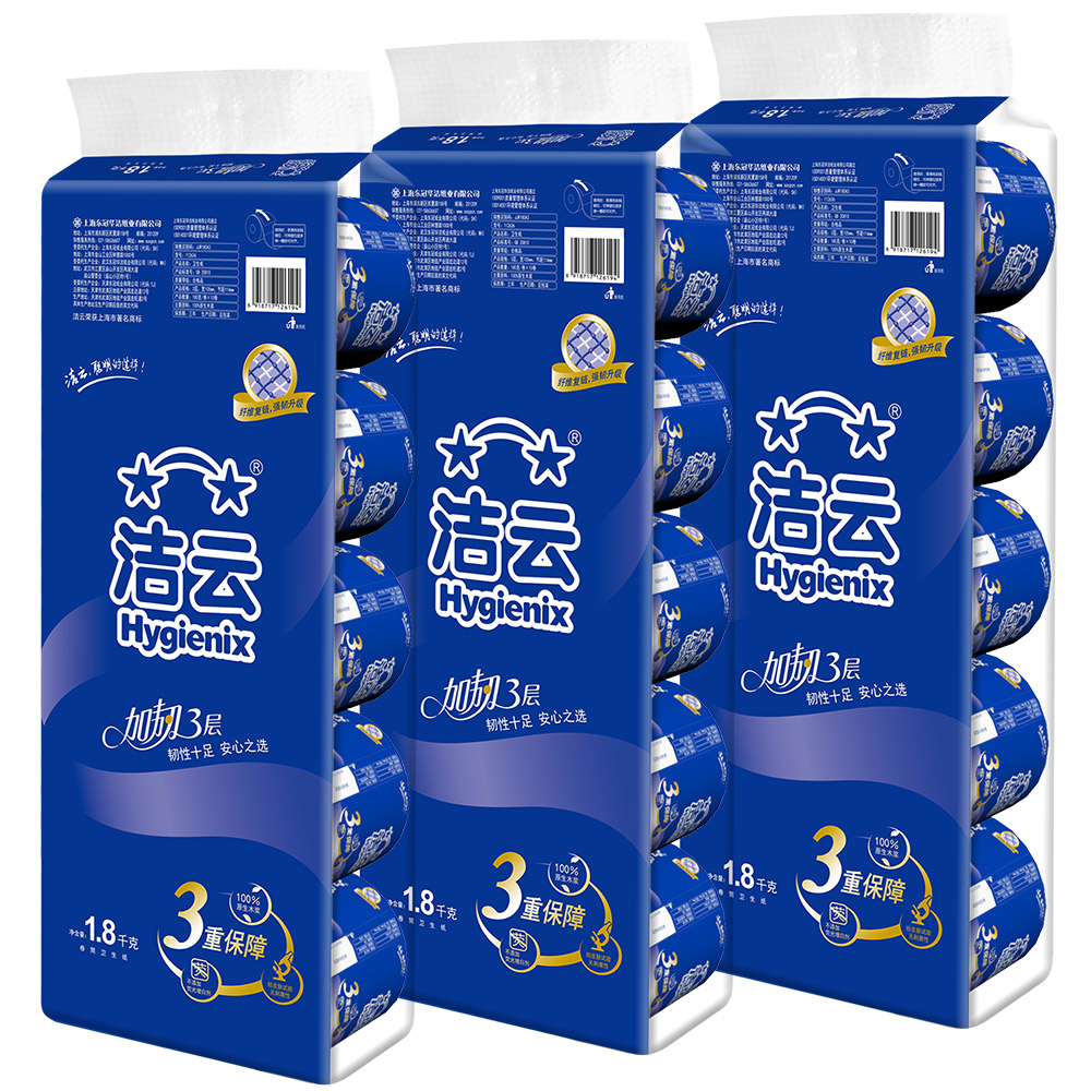 【天猫超市】洁云纸巾 卷纸 加韧3层180g30卷 卷筒纸 卫生纸