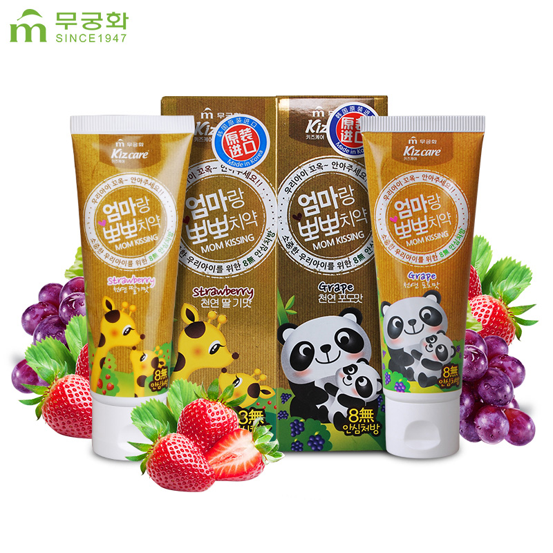 芜琼花韩国原装进口亲亲妈妈儿童牙膏2支安全无氟口腔可吞食