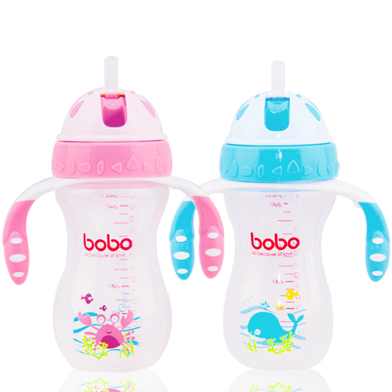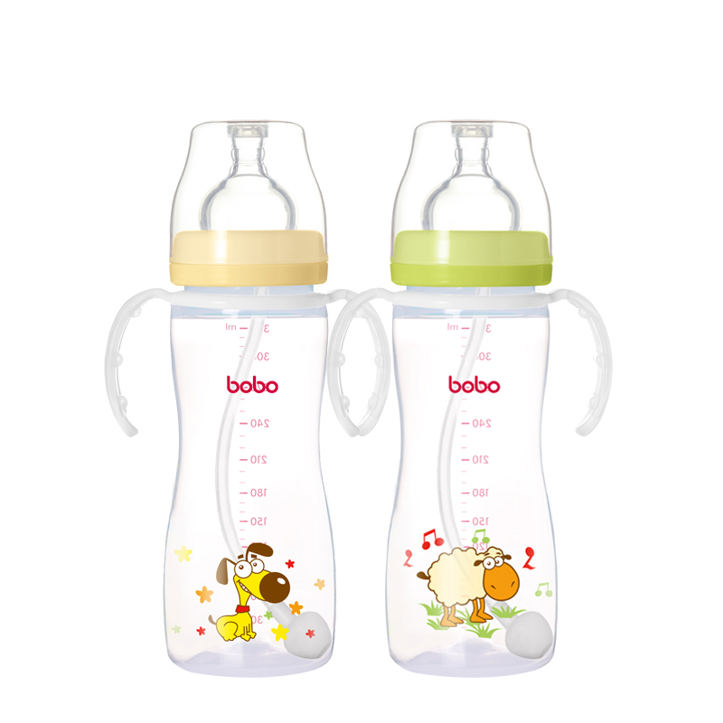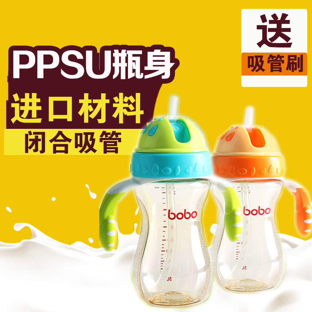 BOBO乐儿宝吸管奶瓶新生婴儿宽口PP奶瓶宝宝带手柄果汁奶瓶BP337