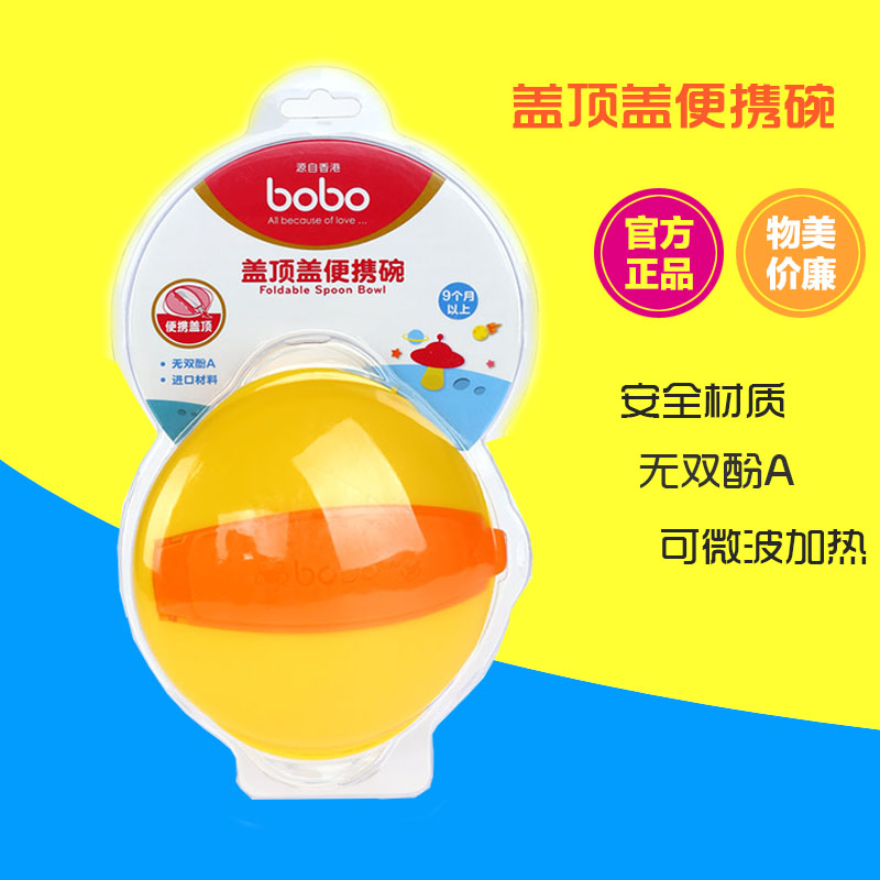 bobo乐儿宝学食碗新生婴儿便携旅行碗宝宝餐具带勺子学习碗BD302