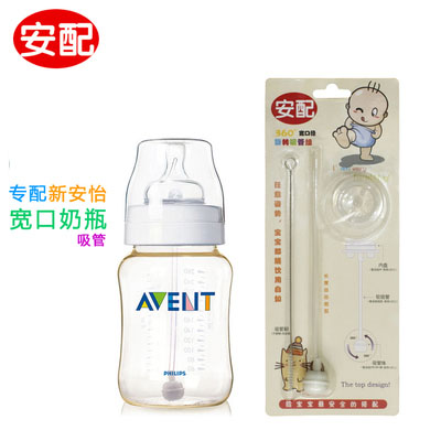 安配宽口奶瓶吸管组配件 专配新安怡宽口PES PP塑料奶瓶