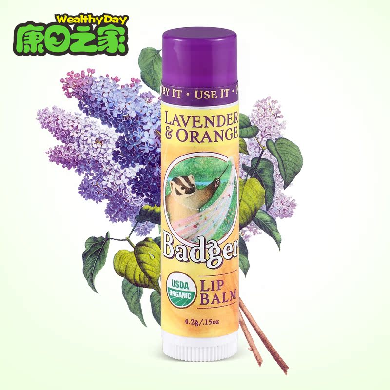 美国Badger贝吉獾纯天然润唇膏薰衣草香橙香味护唇膏保湿滋润4.2g