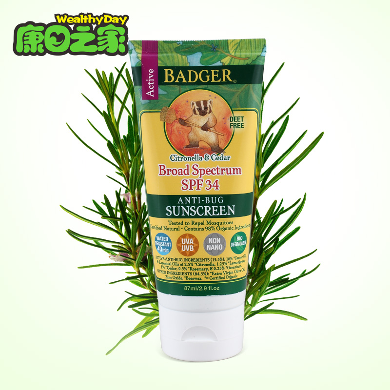 Badger贝吉獾宝宝防晒霜婴儿儿童防晒乳天然有机美国进口防蚊防晒