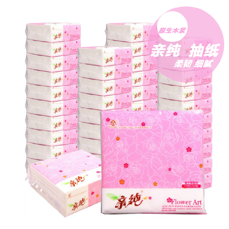 亲纯面巾纸100张餐馆塑装薰衣草香软抽纸巾 40小包