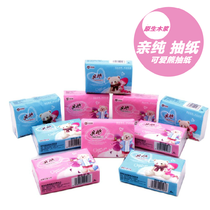 亲纯无香餐巾纸3层面巾纸可爱熊便携式10包60张抽纸纸巾 一提