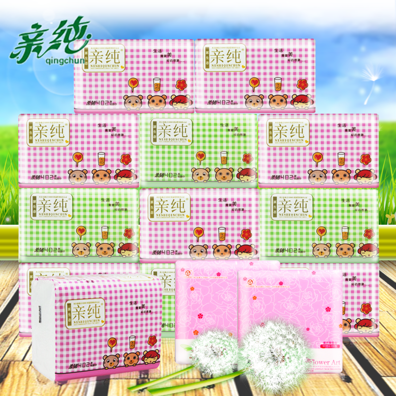 亲纯纸抽套餐3层餐巾纸面巾抽纸卫生纸组合 共14包