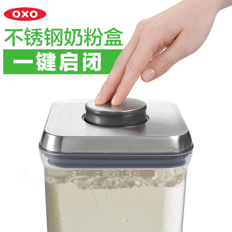 美国OXO奶粉储藏盒不锈钢盖子零食米粉密封盒 储物盒 杂粮储物罐