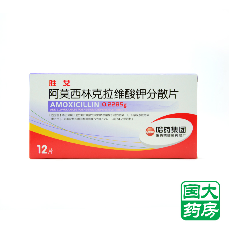 哈药 胜艾 阿莫西林克拉维酸钾分散片 0.2285g*12片/盒