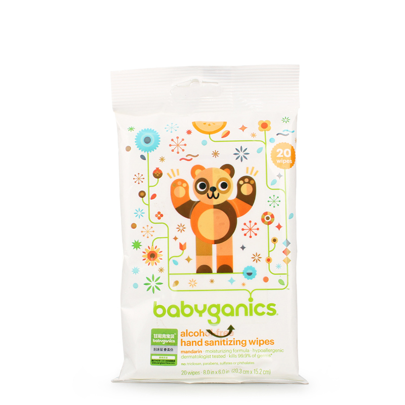 美国BabyGanics甘尼克宝贝 宝宝免洗杀菌洗手湿巾 柑橘香 20片/包