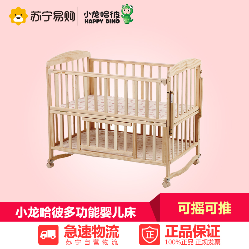小龙哈彼HAPPYDINO多功能实木婴儿床可摇可推蚊帐储物LMY118-J392