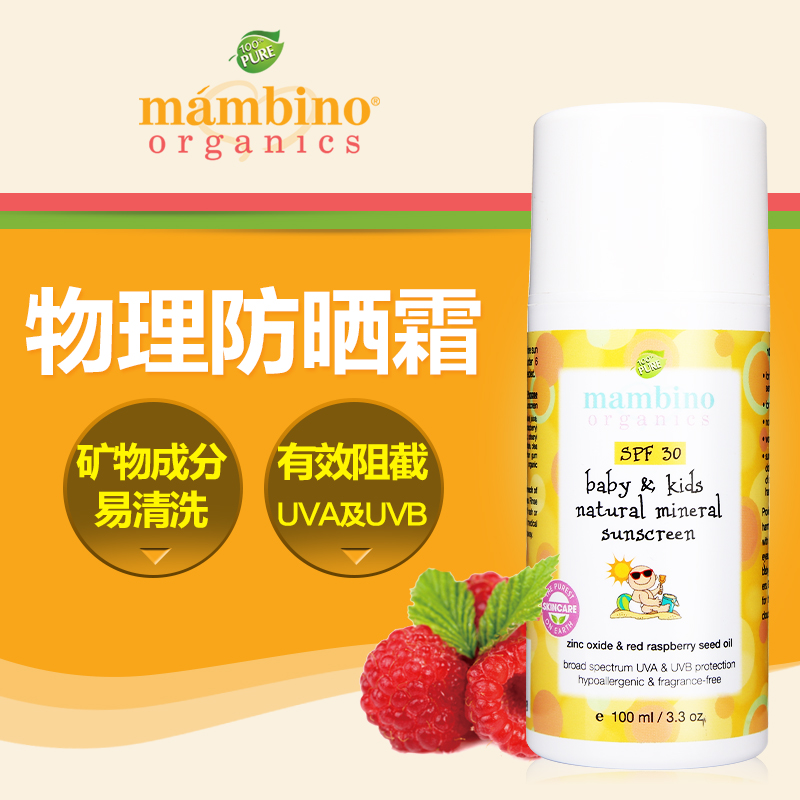 美国mambino有机植物天然矿物滋润不油腻婴幼儿童SPF30防晒乳霜
