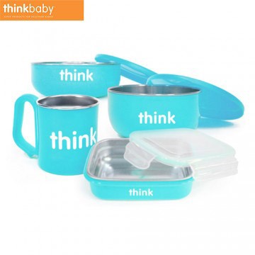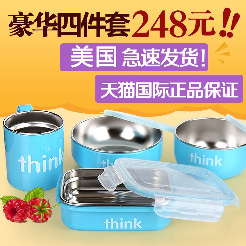 进口Thinkbaby辛可宝贝婴儿水杯不锈钢碗宝宝餐具隔热儿童饭盒4件