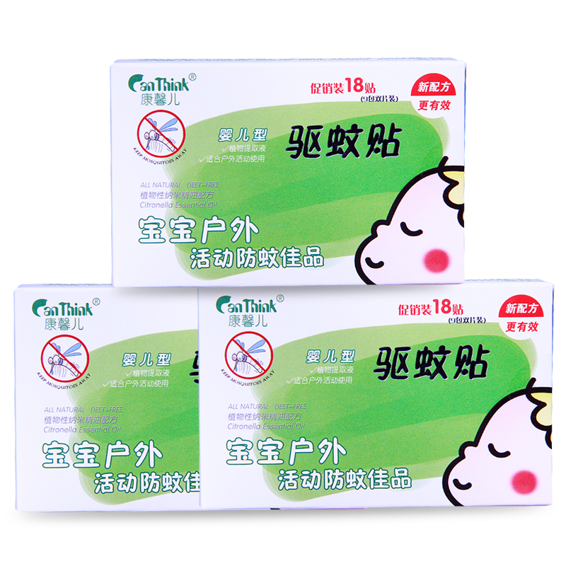 康馨儿0-1岁新生儿婴幼儿专用驱蚊贴18枚*3组合户外户内均可使用
