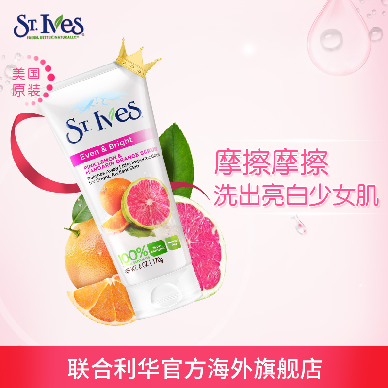 美国直邮St.Ives圣艾芙磨砂膏柠檬橘子光泽肌肤水润易推开170g