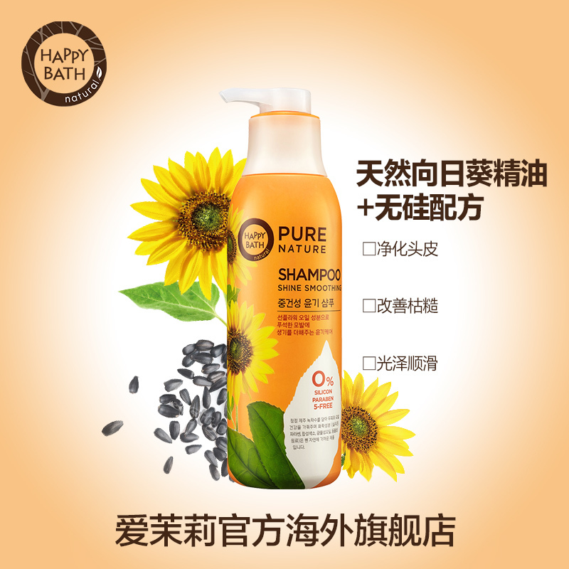 爱茉莉洗发水HappyBath无硅油向日葵闪亮顺滑滋润420ml中干性发质