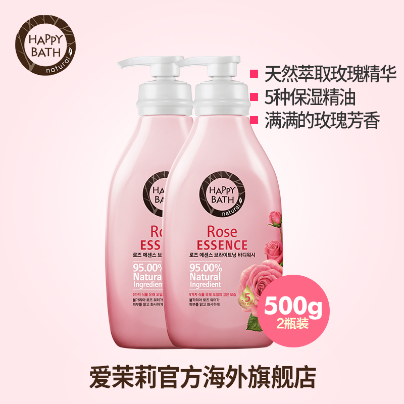 爱茉莉官方直供韩国Happy Bath玫瑰精华芬香沐浴露液2瓶套装