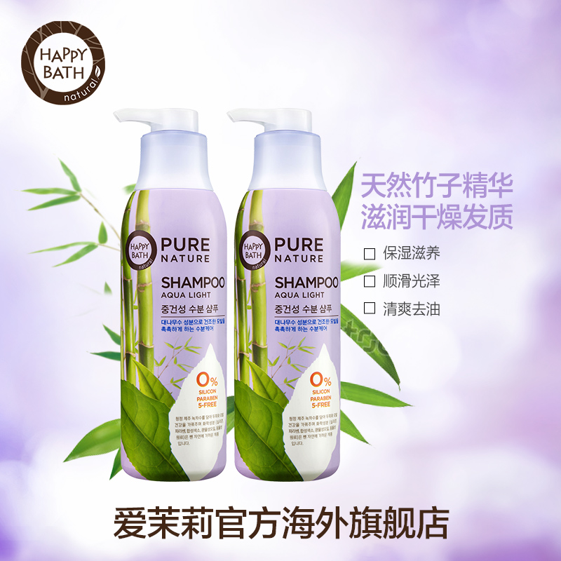 爱茉莉洗发水套装HappyBath无硅油竹子精华水润丝滑秀发420ml*2瓶