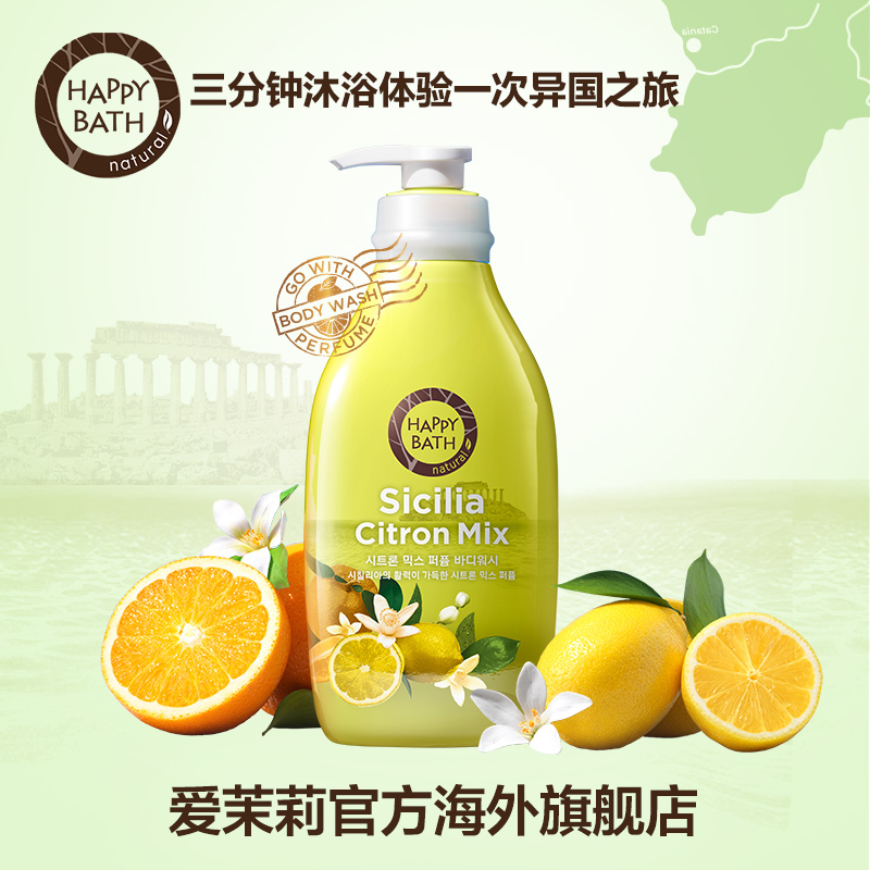 爱茉莉happybath西西里柠檬清新怡人香水清爽沐浴露500g 赋予活力