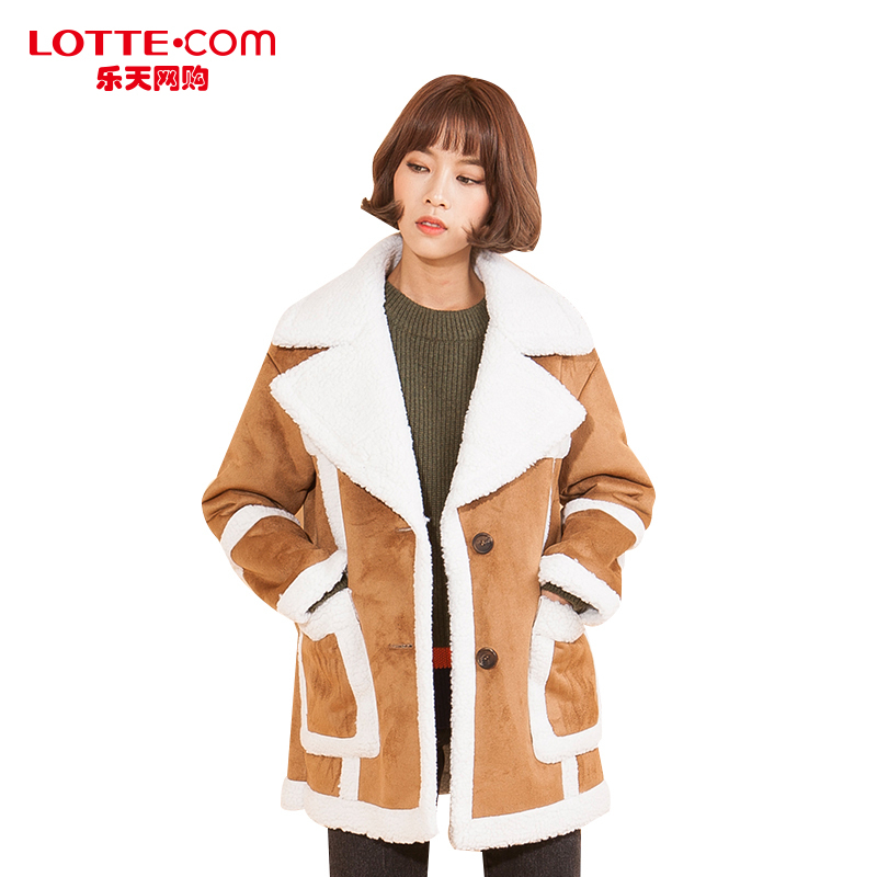 乐天网购LAP女款冬季外套翻领翻绒羔羊皮衣中长款时尚保暖个性