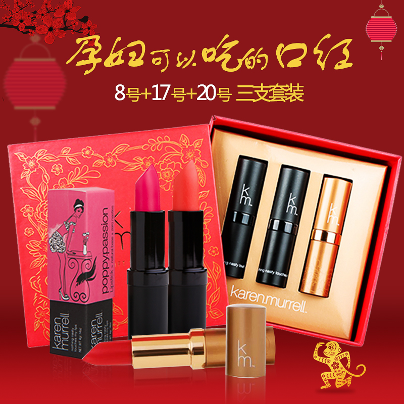 KAREN MURRELL天然 孕妇口红KM唇膏 3支礼盒装 (6 8 12)