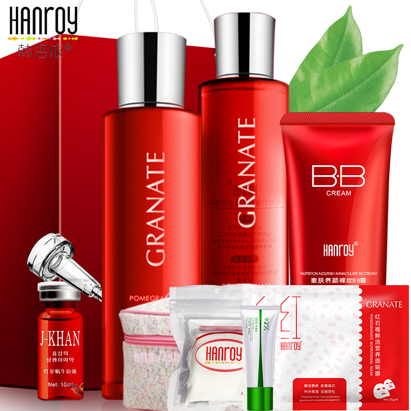 韩洛依韩国红石榴滋润白皙补水保湿化妆品护肤品套装正品包邮