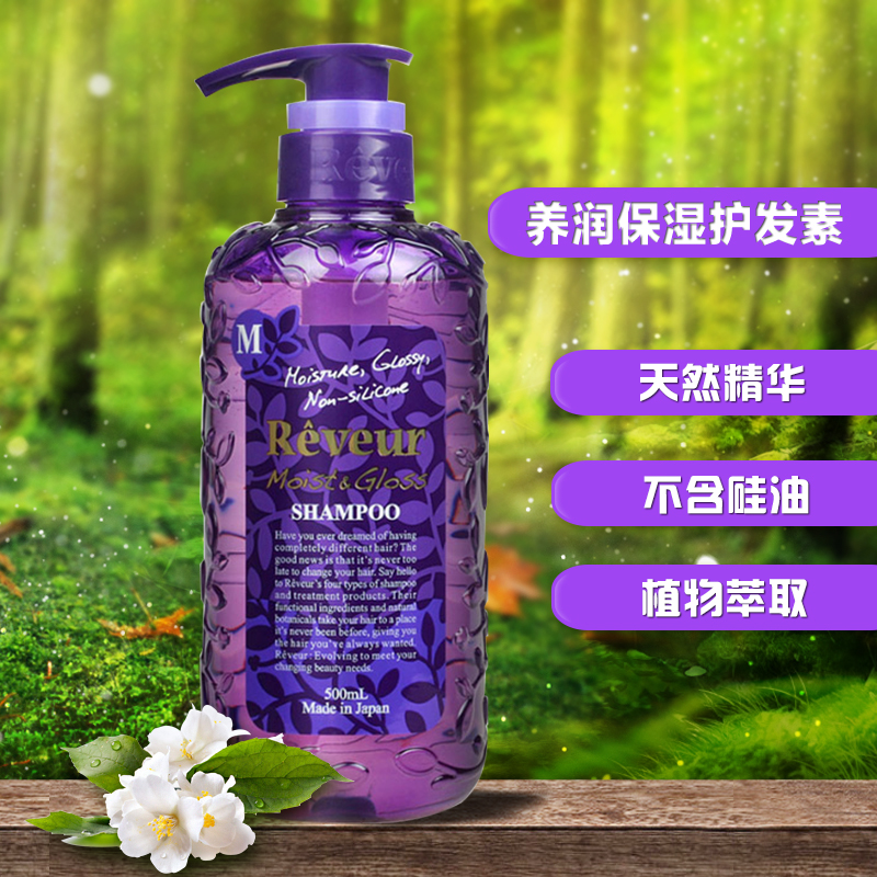 保税进口 日本 Reveur 紫色润泽保湿滋润顺滑无硅油洗发水 500ml