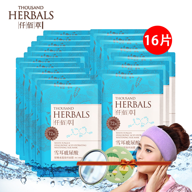 仟佰草雪耳玻尿酸蚕丝面膜16片 春夏补水嫩白保湿面膜贴专柜正品
