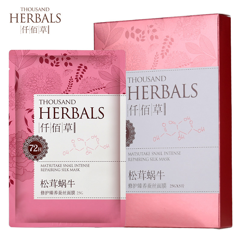 仟佰草蜗牛面膜 松茸蜗牛修护臻养蚕丝 面膜贴 盒装 补水保湿舒缓