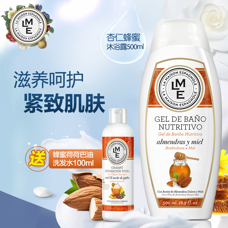 西班牙进口LME沐浴露杏仁蜂蜜香美白补水持久留香全身男女正品