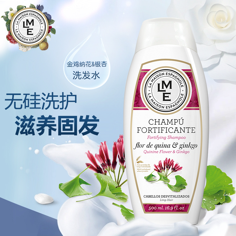 西班牙LME无硅油洗发水去屑止痒持久留香女士男花香银杏正品500ml