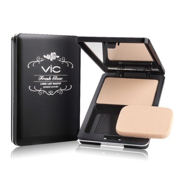 VIC包邮 牛奶妈推荐台湾VIC光漾美肌轻透持久两用粉饼12G