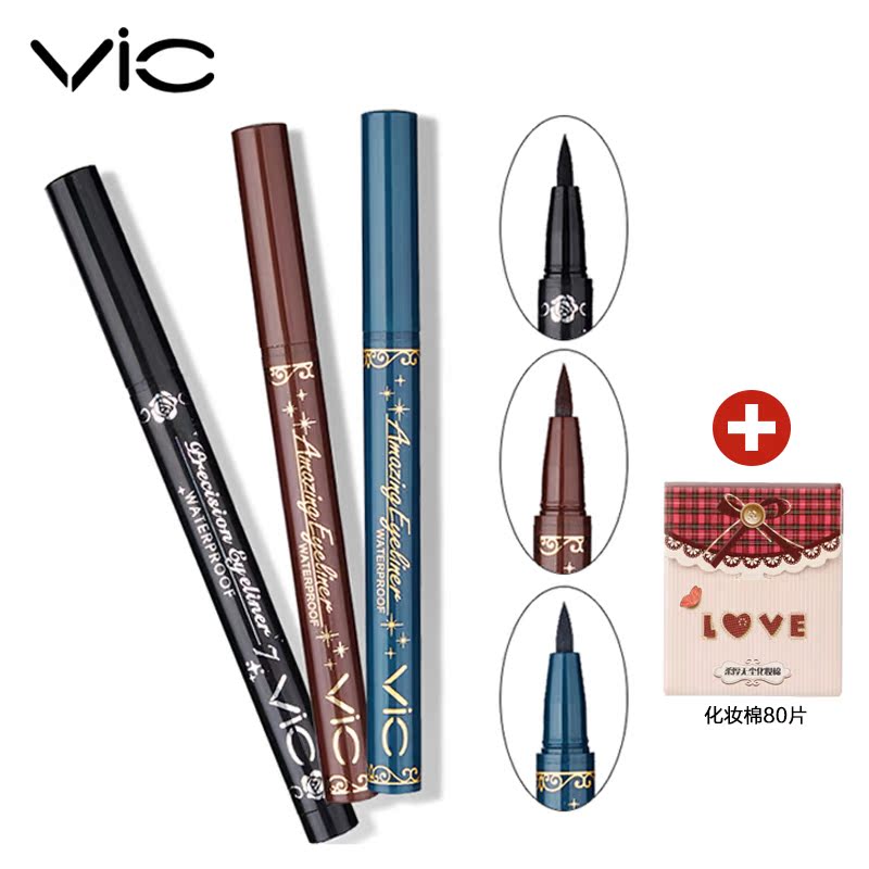眼线笔初学者VIC专业魅惑眼线液笔 防水防油不晕染眼线笔送化妆棉