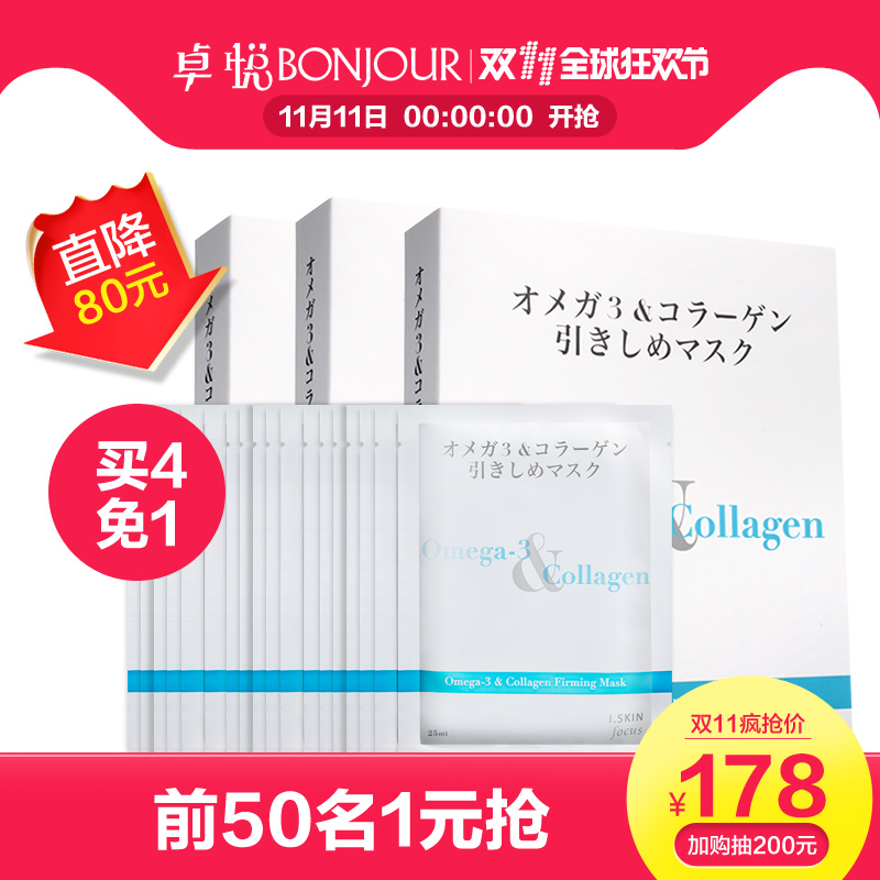 I.SkinFocus奥米加3胶原蛋白紧致弹滑面膜x3盒装包税持久补水保湿