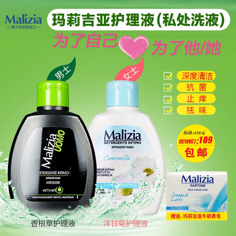 Malizia 意大利原瓶进口 家庭装保湿滋润亮白补水男女 沐浴露乳1L