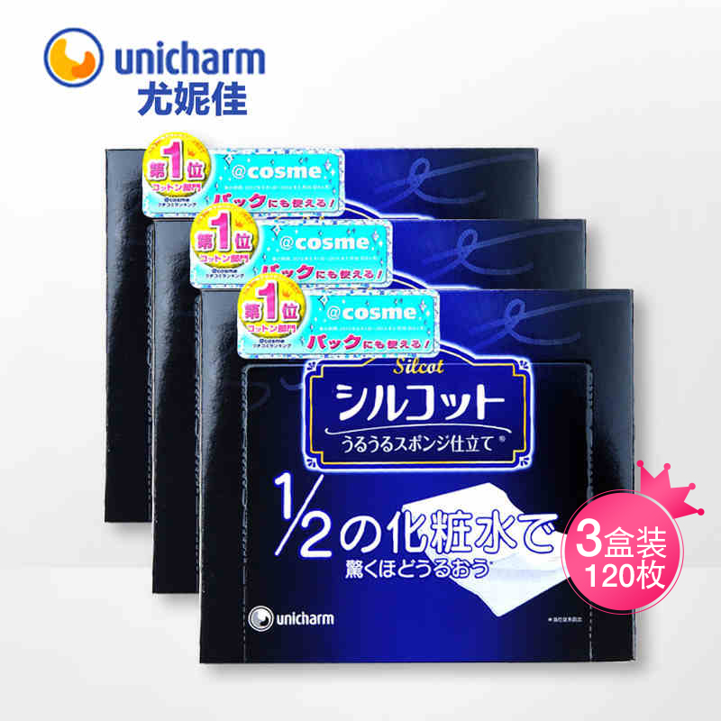 UNICHARM/尤妮佳1/2超吸收省水妆卸妆棉片湿巾纯棉厚3盒装120枚
