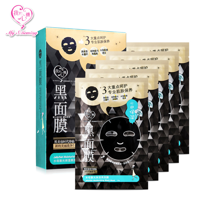 台湾我的心机 水母激光保湿黑面膜23g*5片 水母胶原添加 滋润修护