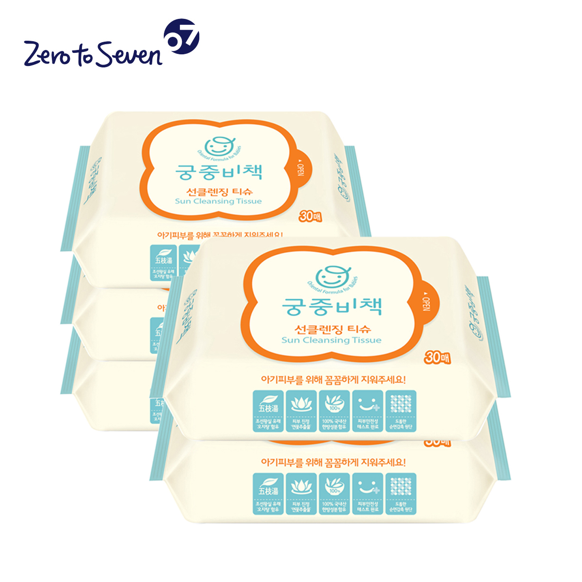 韩国宫中秘策婴儿防晒霜专用便携式无刺激 卸妆巾30片*5包