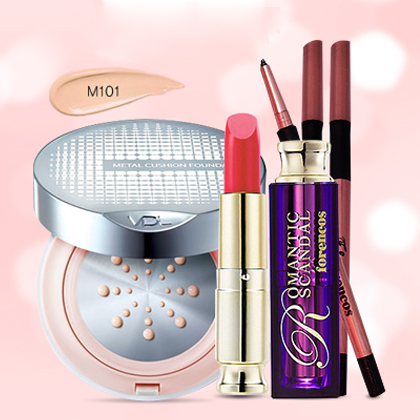 【美丽搭档】焕新亮彩套餐靓丽彩妆唇膏/眼线/金属气垫BB霜直邮