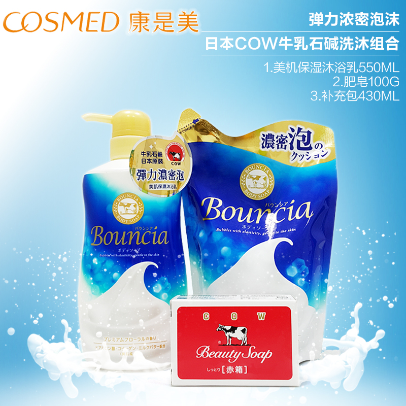统一康是美 COW日本牛乳石碱皂 保湿沐浴套组 沐浴露 替换装