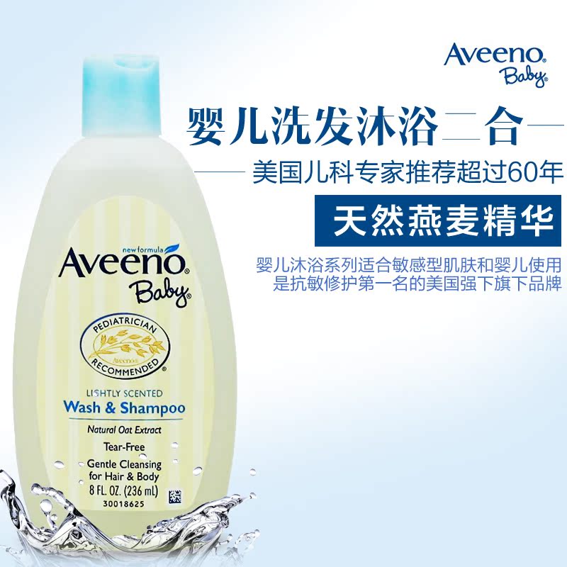 美国采购Aveeno baby 天然燕麦婴幼儿宝宝洗发沐浴露液 236ml包邮