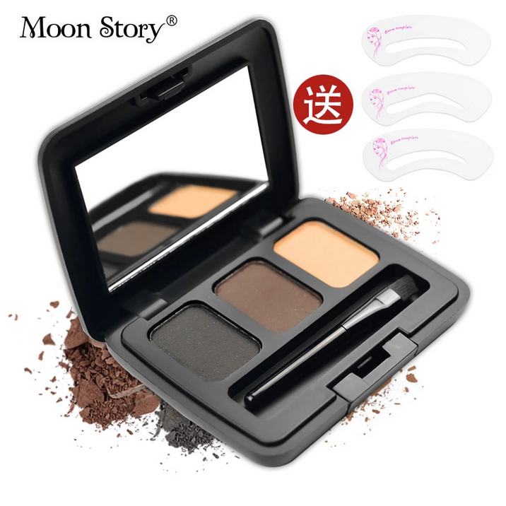 Moonstory/萌黛儿立体三色眉粉 防水防汗持久不脱妆带眉刷送眉卡