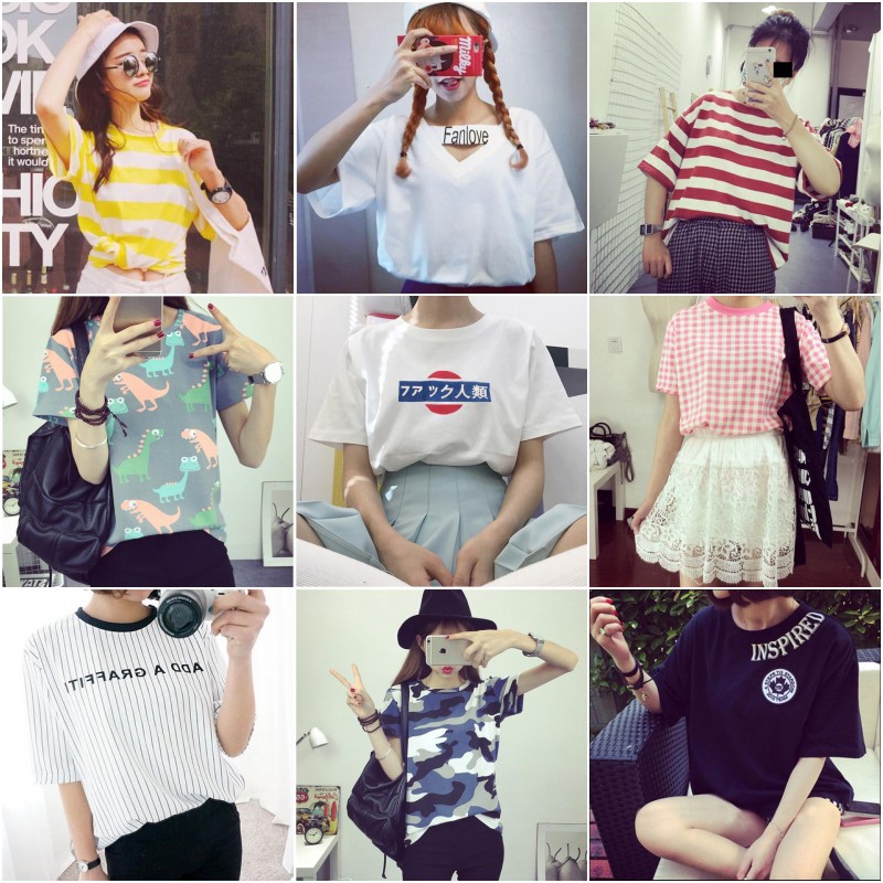 > 夏季新款女装学院风短袖T恤女宽松显瘦韩范学生港味复古百搭上衣